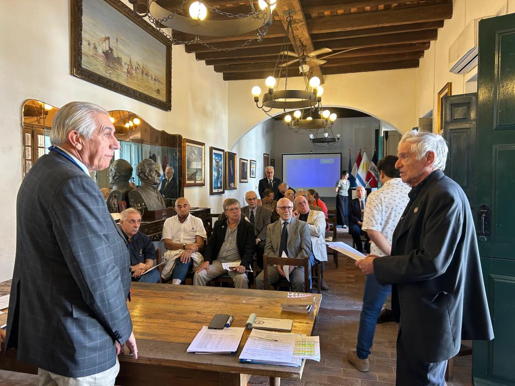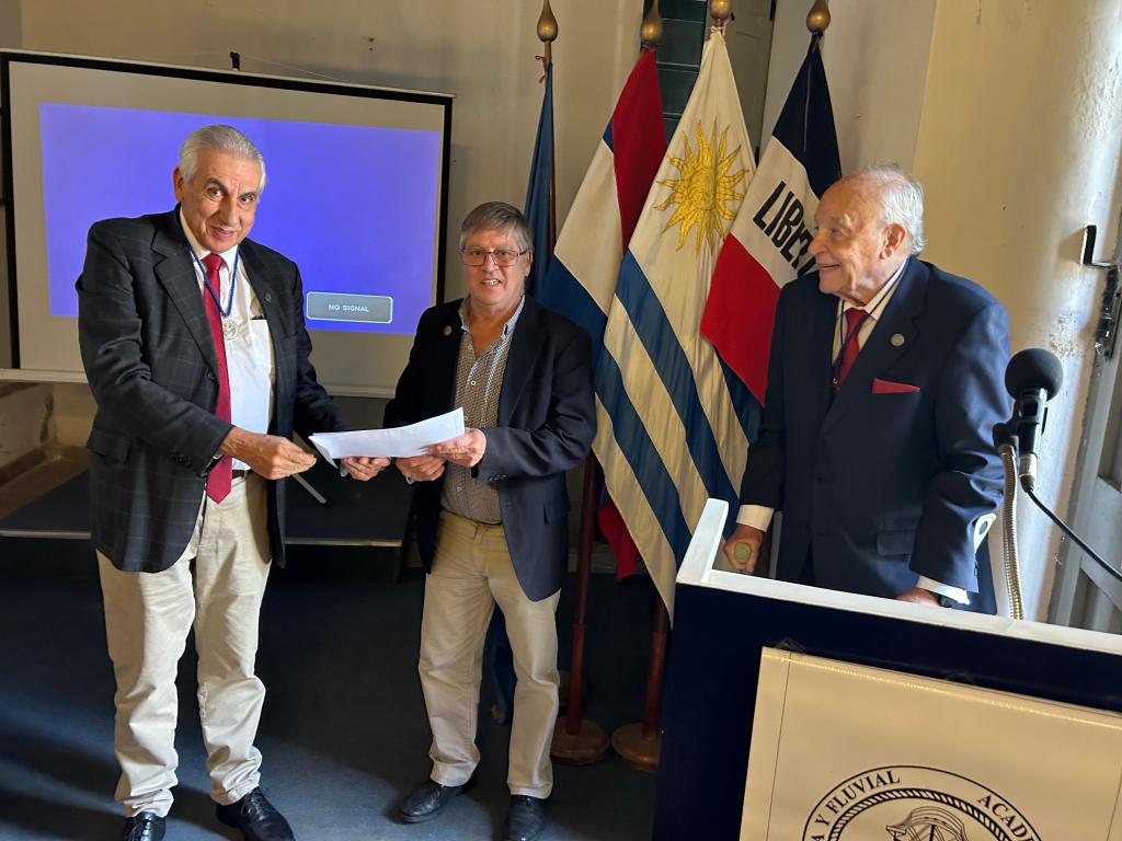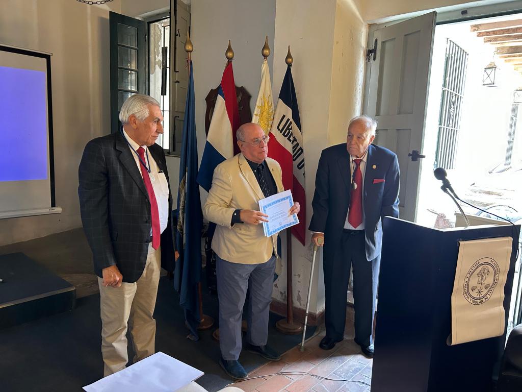 Entrega de diplomas de Miembros de Mérito de la AUHMF a los Académicos Francisco Valiñas Freitas y Alejandro Nelson Bertocchi Morán (recibe ambos el 2do de los nombrados por ausencia justificada del 1ero)